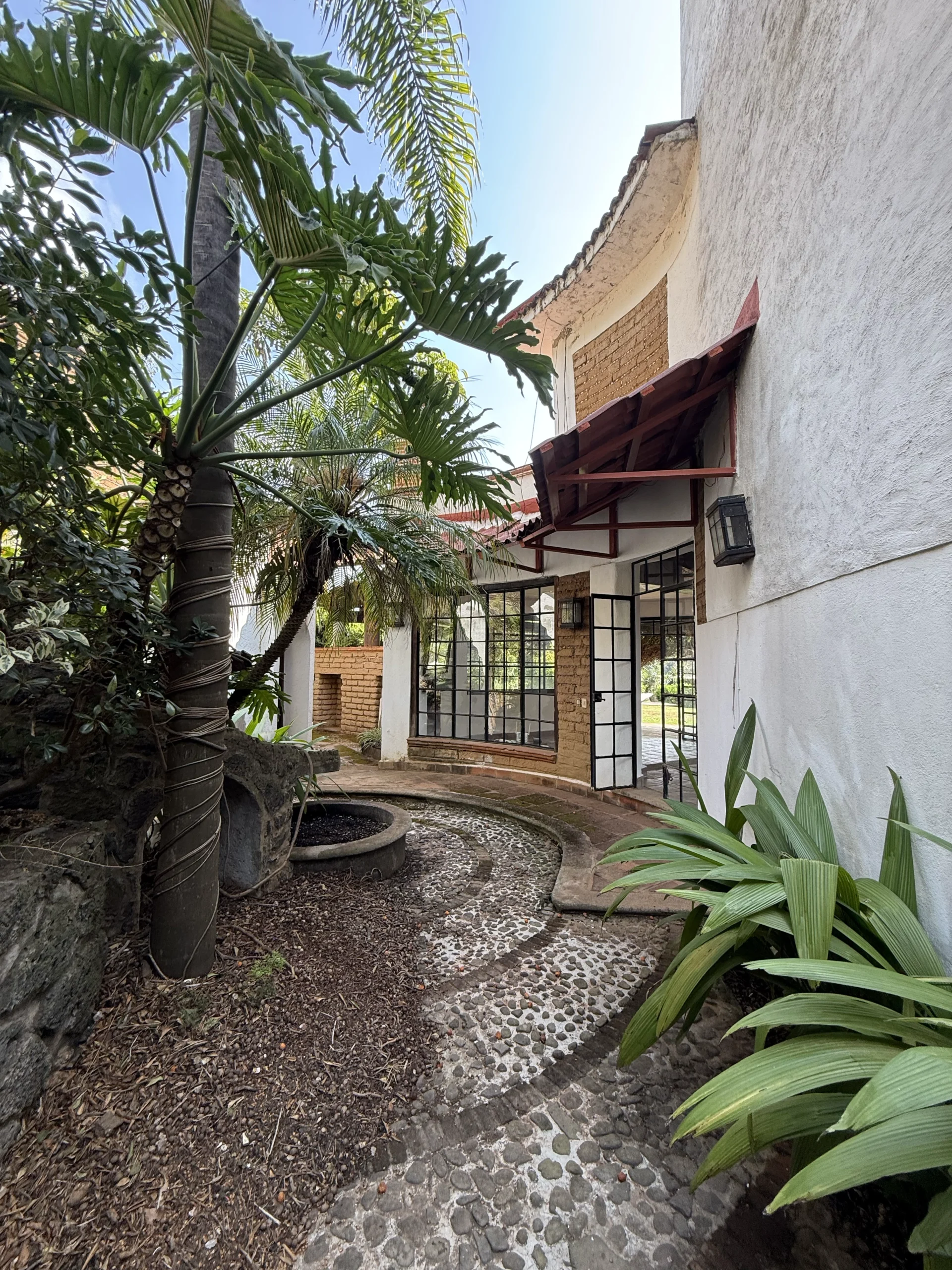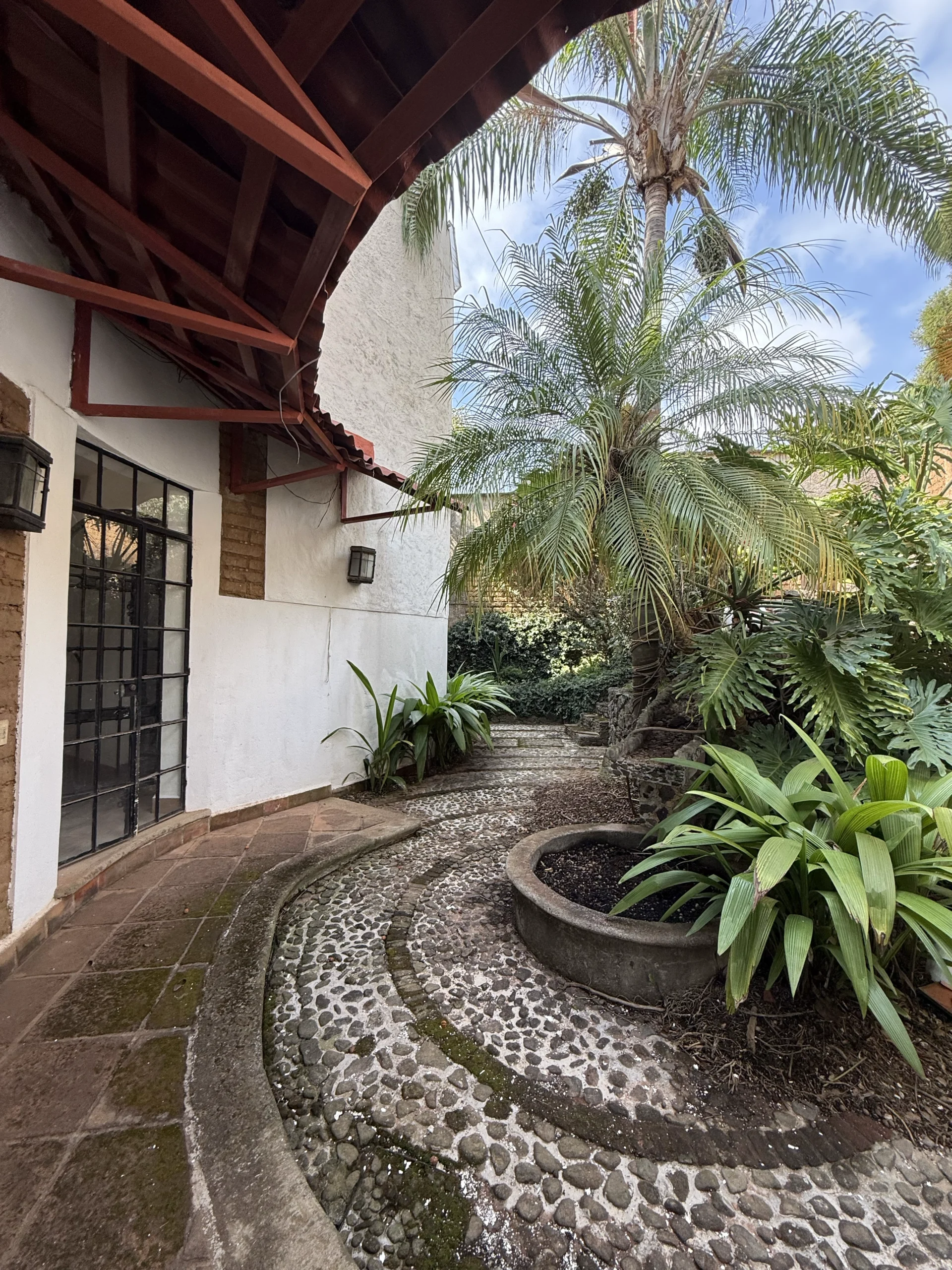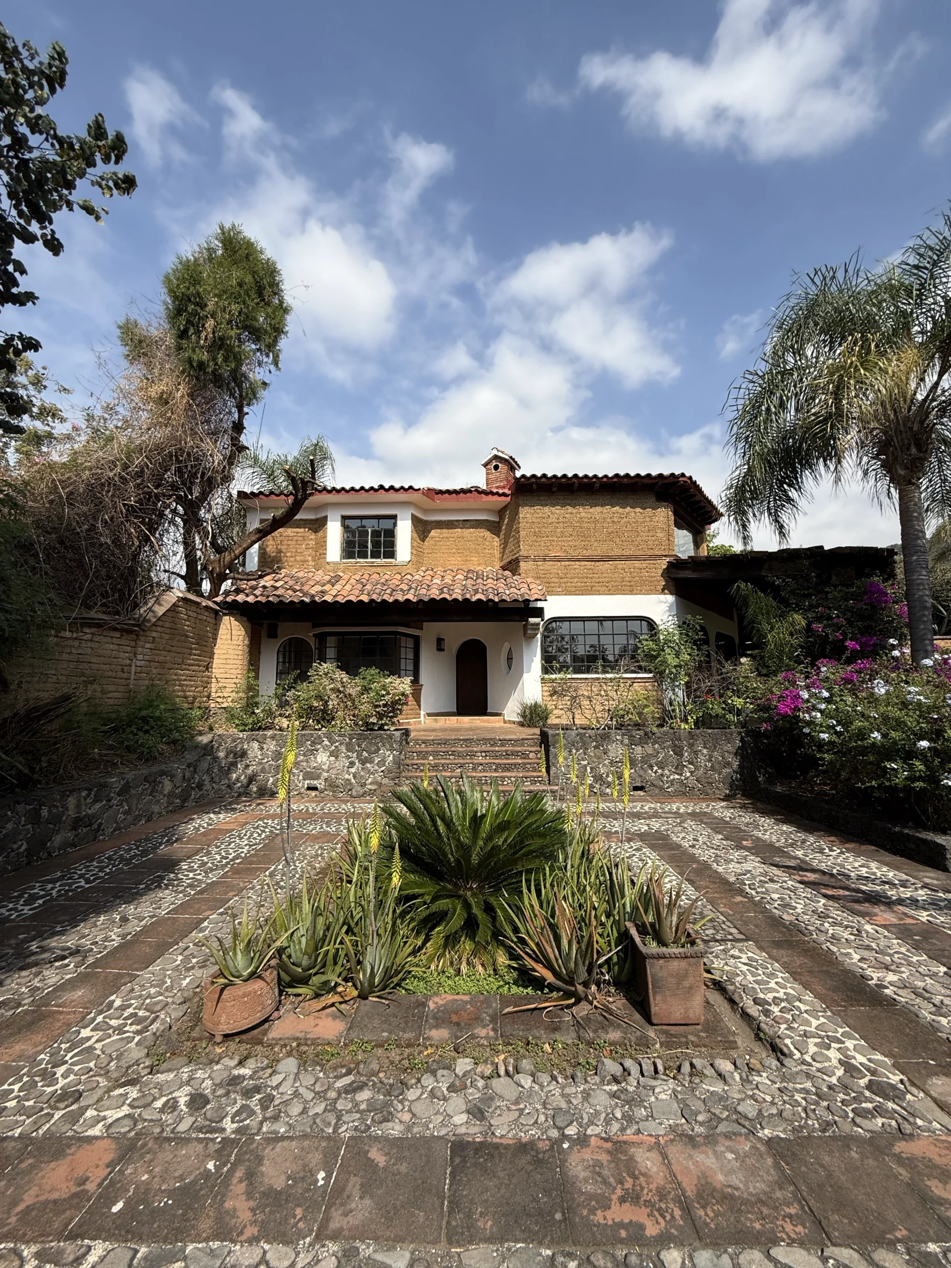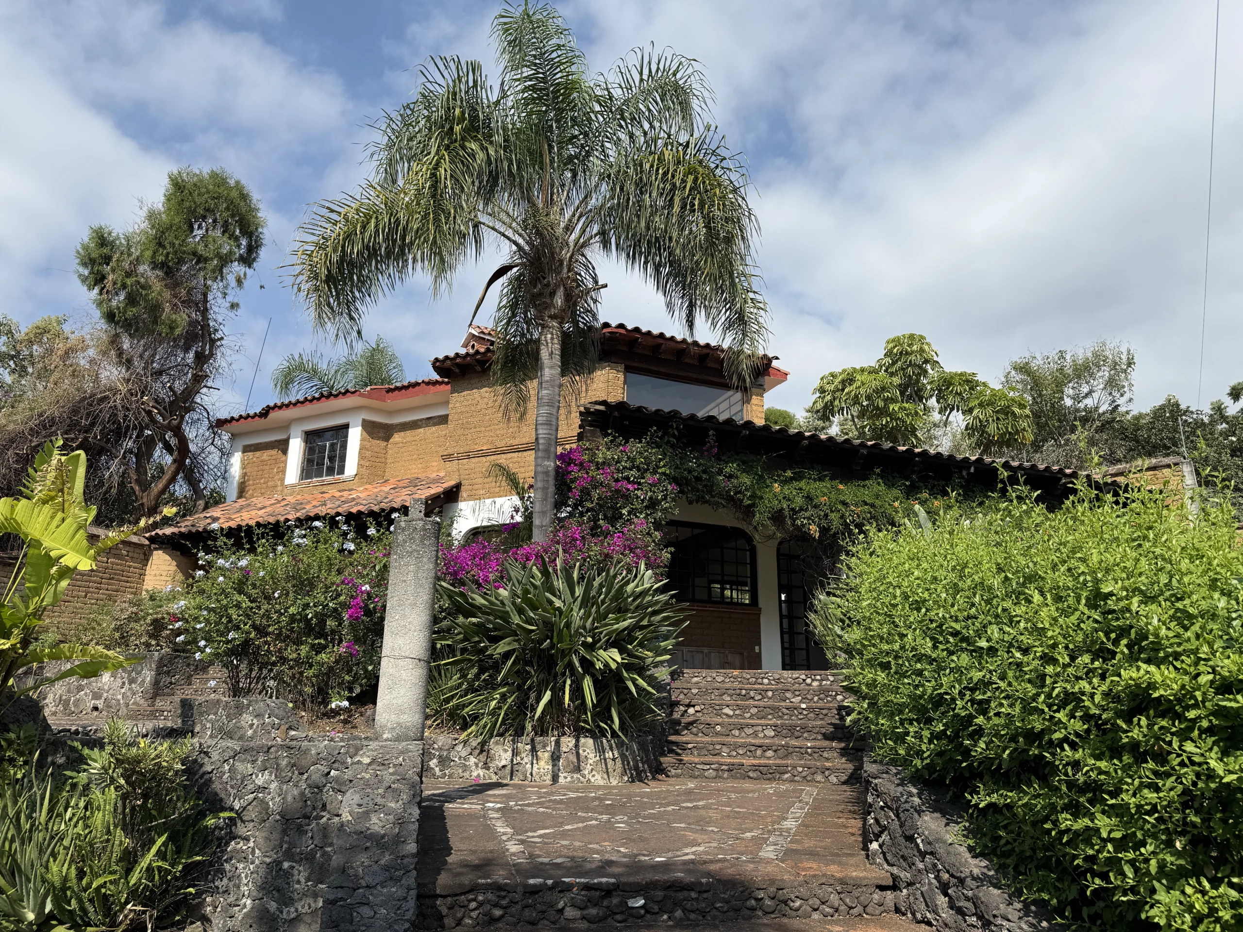 En la planta alta se encuentra una suite con terraza privada, baño completo y una vista excepcional hacia las montañas, ideal como refugio íntimo y tranquilo. En el exterior, la propiedad cuenta con alberca, terraza techada perfecta para convivencias, jardín maduro y una fuente con cascada que aporta un toque único y mágico al conjunto. Un baño exterior brinda mayor comodidad para el área social.